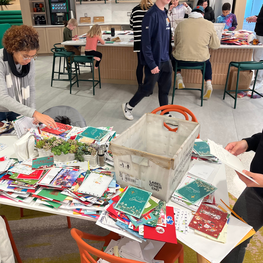 We are greatly to the wonderful students and parents of Georgetown Prep in Maryland for volunteering their time during the busy Holidays to help sort and box the cards for shipment overseas.