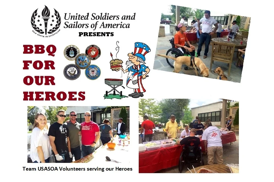 Over the past 4 years, USASOA has been providing a Saturday afternoon of great American food, leisure, music, and fellowship for our recovering wounded service members that are currently residing at Walter Reed Military Medical Hospital. The physical and mental injuries sustained by our wounded will often last them a lifetime. The USASOA outdoor BBQ FOR OUR HEROES program has evolved into an amazing morale-boosting event for our ill, injured and wounded who are able to come outside into the warm spring and summer sunlight and be surrounded by loving and caring TEAM USASOA Volunteers who produce a traditional, American BBQ with all the fixin's. USASOA holds one BBQ a month beginning in May and wrapping up in late October with our famous Chili-Fest. We hope to expand this program into other military and veteran medical facilities around the nation. At each BBQ, we feed between 50 and 120 of our ill, injured and wounded heroes. Please consider BUYING A HERO A BURGER by making a tax-deductible donation of any amount now. DONATE
