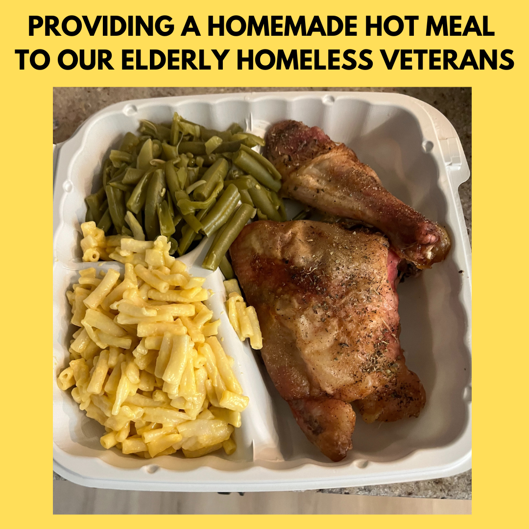 As part of our Homeless and Elderly Veterans Outreach Program, we serve weekly meals to homeless veterans on the streets, including elderly veterans living in transitional facilities. On Sundays, we go a step further by providing a full homemade chicken dinner specifically for our elderly veterans. They have earned and deserve our care, compassion and support.